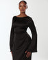 The Black Mira Satin Dress is the definition of understated elegance. Crafted in a fluid satin that drapes beautifully over the body, this long silhouette dress features a graceful flare and full-length sleeves for a refined finish. The rich black hue adds depth and drama, making it your go-to for evening soirees, formal occasions, or a polished night out. Minimal yet magnetic, Mira is the dress that speaks volumes quietly.
